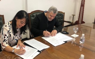 El Tribunal Superior firmó un convenio con el Municipio de Pico Truncado. Esta mañana, su presidenta, Paula Ludueña y el intendente Osvaldo Maimó acordaron que la comuna preste una locación para descomprimir el edificio de calle Santiago del Estero, donde actualmente funcionan varias dependencias judiciales a la vez.
